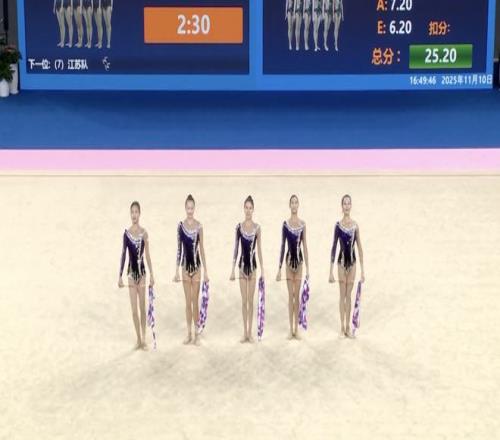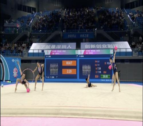 决赛中先进行的是5带的比拼,上海队的五名队员配合默契,以一套完美的动作获得25.05分。随后进行的3球2圈较量中,五名队员整套动作质量完成度较高,拿到25.80分。最终,上海队以99.150的总分摘得银牌。